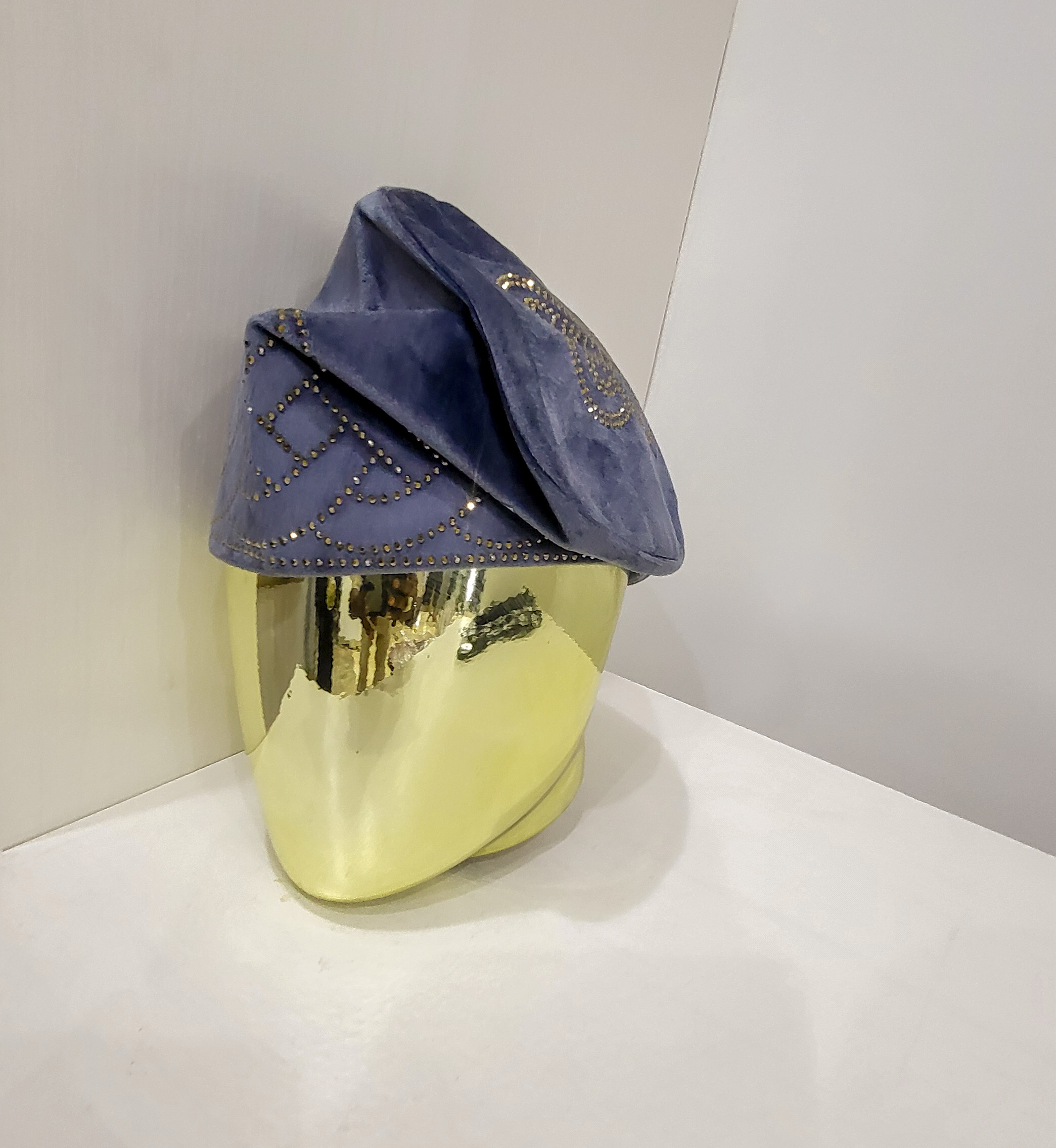 Add a touch of regal sophistication to your outfit with this Velvet Royal Blue Embellished Traditional Hat. Crafted with luxurious velvet fabric and adorned with delicate gold accents, this hat is the perfect accessory for cultural events, weddings, or formal gatherings. Its unique design ensures a timeless elegance that complements both modern and traditional attire. Elevate your style and make a lasting impression!